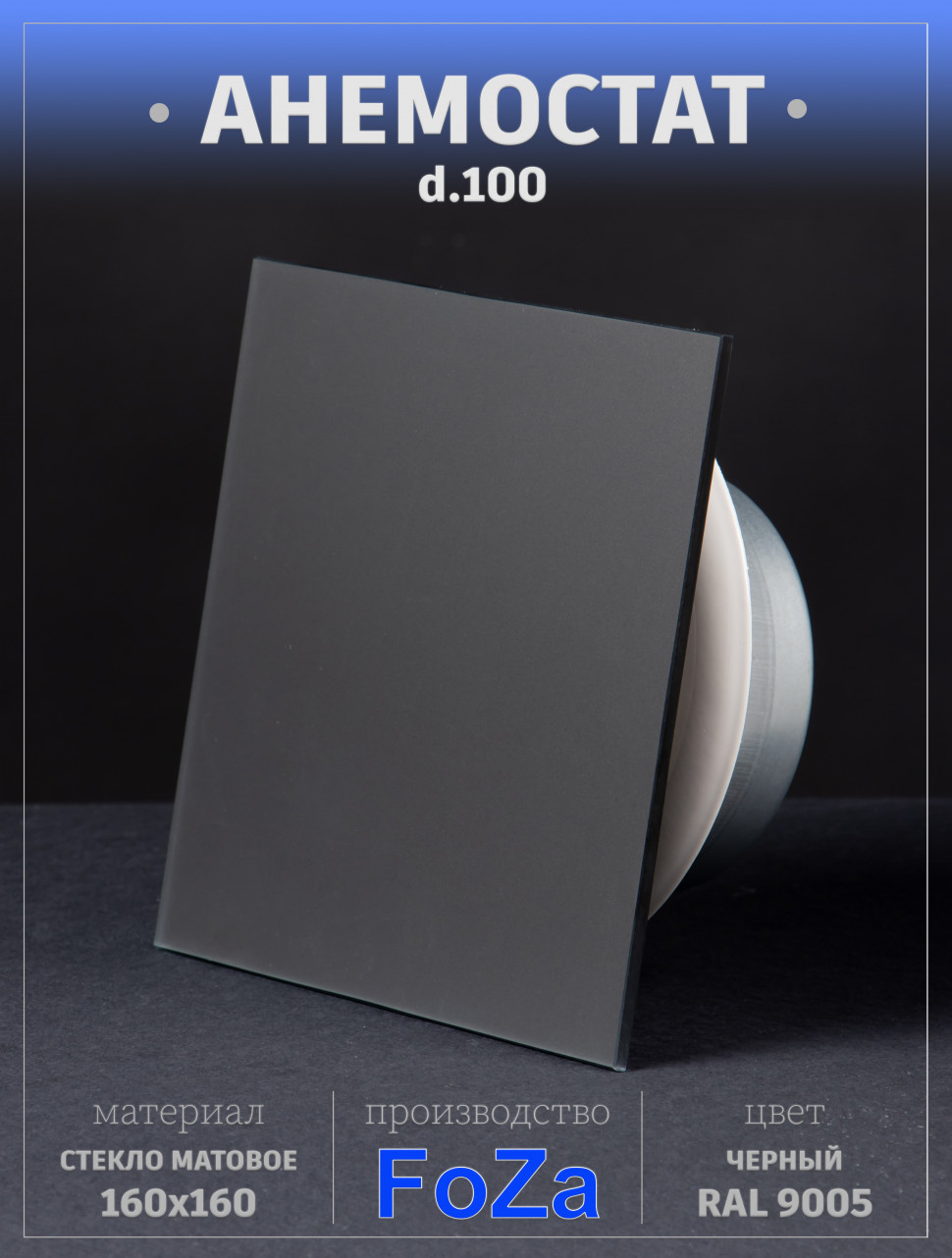 Анемостат со стеклянной внешней частью FOZA D 100 мм. Матовое стекло. Цвет Чёрный. RAL 9005 Квадратный в интернет-магазине «ВЕНТФОМ». Заказать с доставкой! Тел.: +7 (925) 201-33-89.
