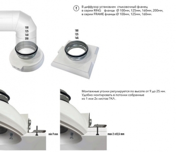 Диффузор под покраску скрытого монтажа SECRET RING 125/150 с приточно-вытяжным вентилятором