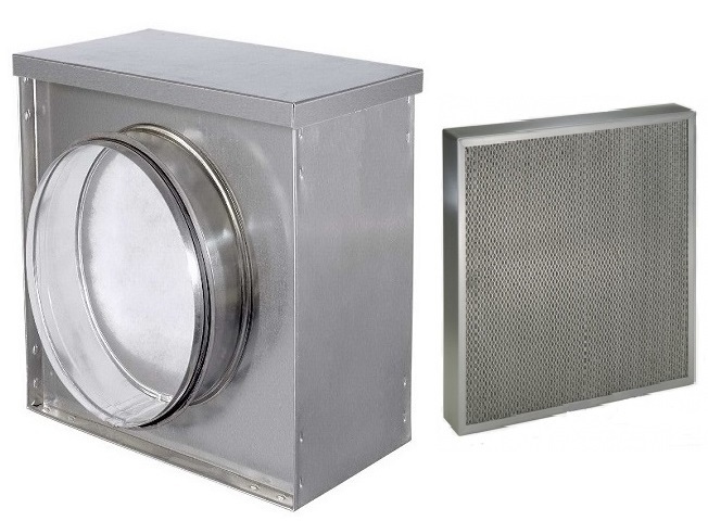 Корпус фильтра снабжен круглыми патрубками для подсоединения к системе воздуховодов соответствующих размеров.