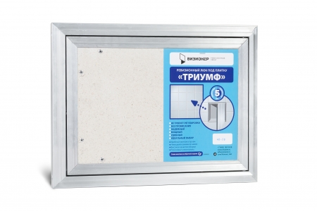 Рама люка для ревизии «Триумф» выполнена из алюминиевого профиля коробчатой формы и Г-образной в сечении для максимальной жесткости и удобства монтажа. Дверца люка изготавливается и алюминиевого профиля Т-образной формы, переменного сечения, с выраженными ребрами жесткости, что делает её конструкцию более жесткой в отличие от своих предшественников. Так как немаловажно исключить перекосы конструкции дверцы, чтобы не допустить деформации наклеенных на нее материалов. В отличие от наших конкурентов, толщина стенок алюминиевого профиля у нас по-прежнему 2 мм и более.