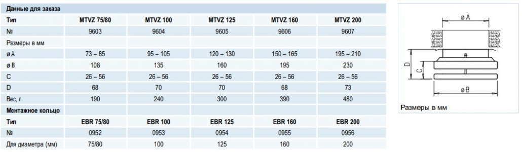 Для монтажа в металлические стенки вентиляционных каналов и тонкие панели необходимы монтажные кольца (см. таблицу).