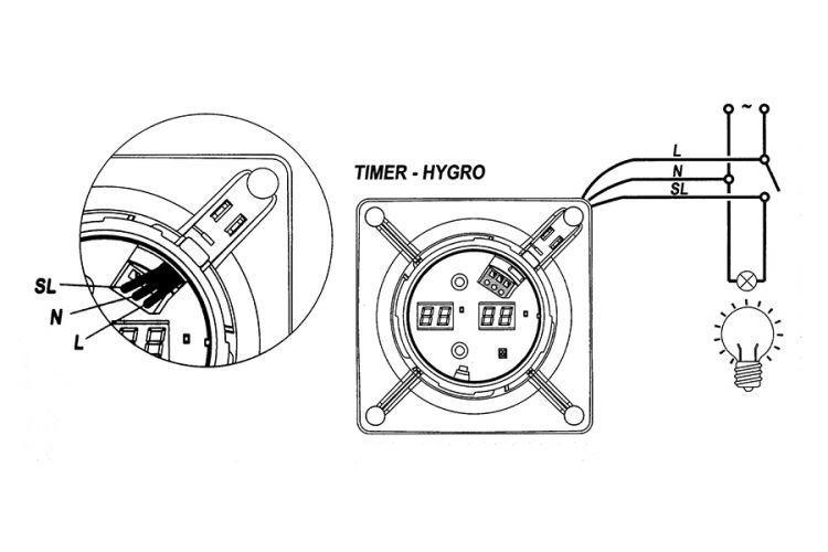 GTH - датчик влажности, таймер, термометр. На центральной панели высвечивается температура воздуха в помещении и уровень влажности). Контроль влажности от 40% до 95%.