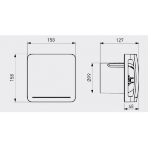 Модель “H”: Модель оснащена гигростатом, вентилятор переходит на максимальную производительность по сигналу гигростата или внешнего выключателя (работает совместно с таймером). Модель