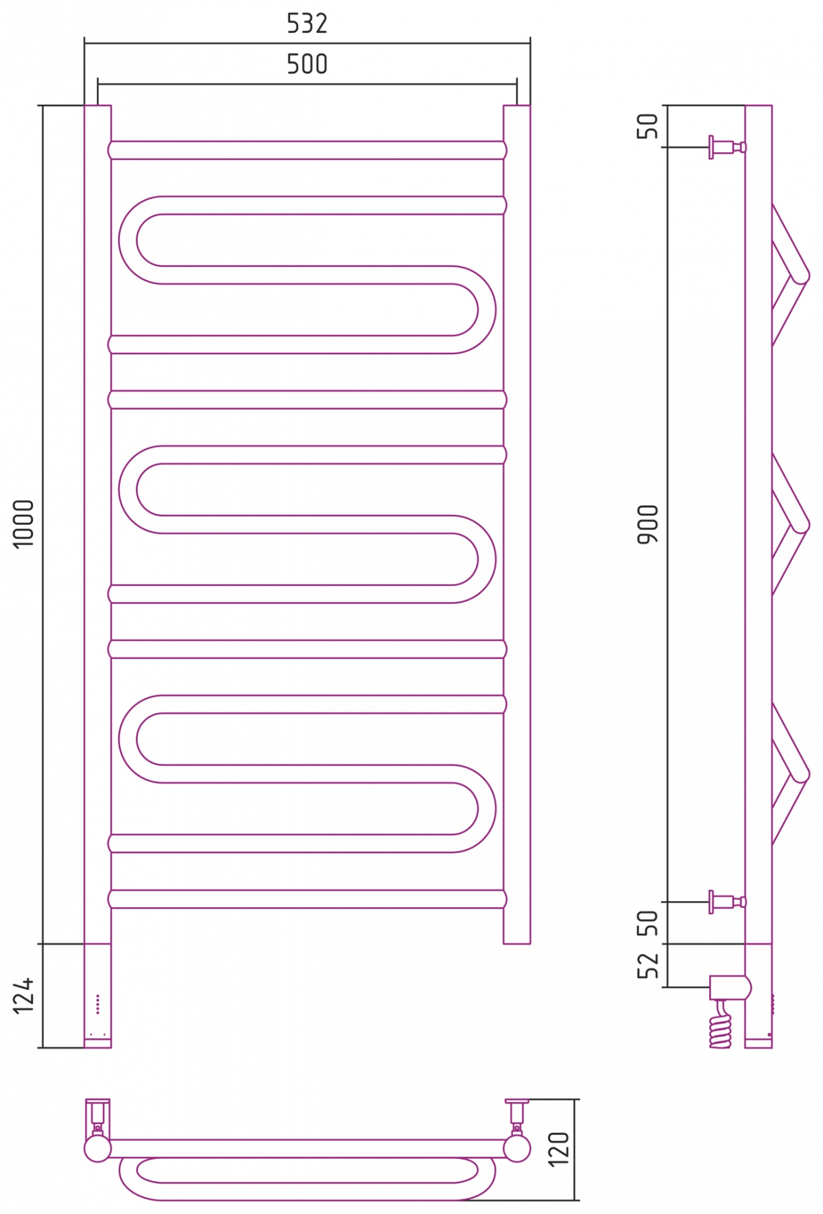 Полотенцесушитель электрический Сунержа Элегия 3.0 1000x500