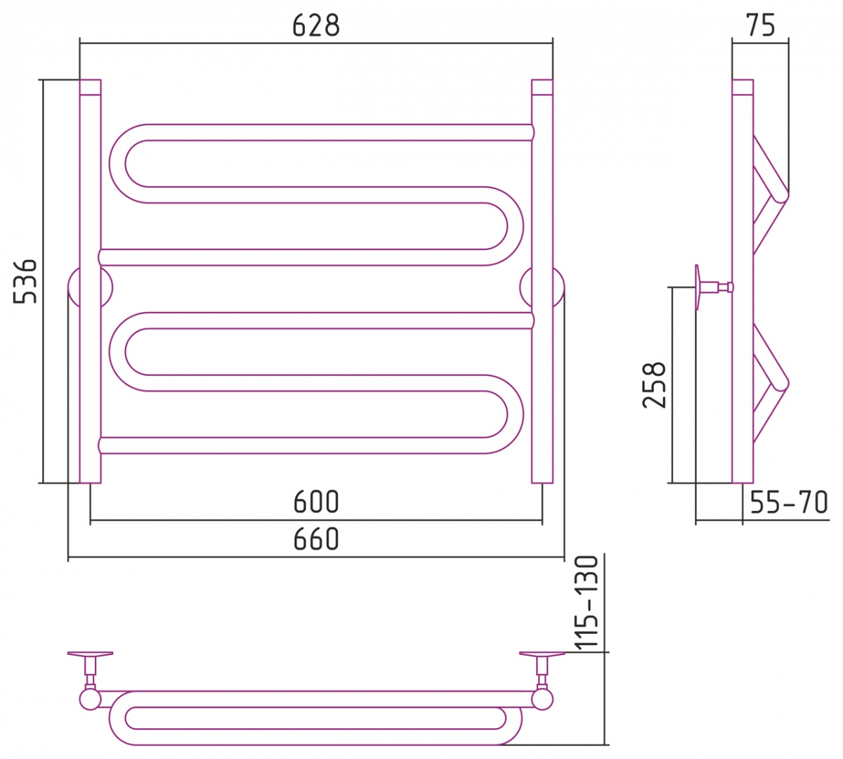 Полотенцесушитель водяной Стилье Универсал-51 600x600