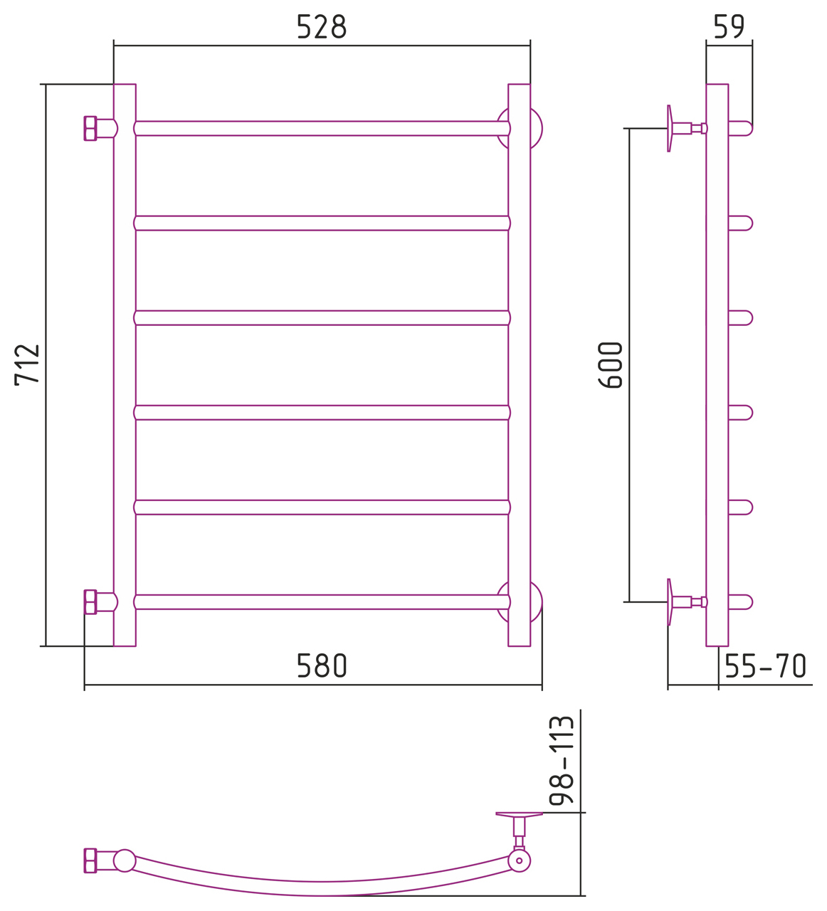 Полотенцесушитель водяной Стилье Версия-Б2 600x500