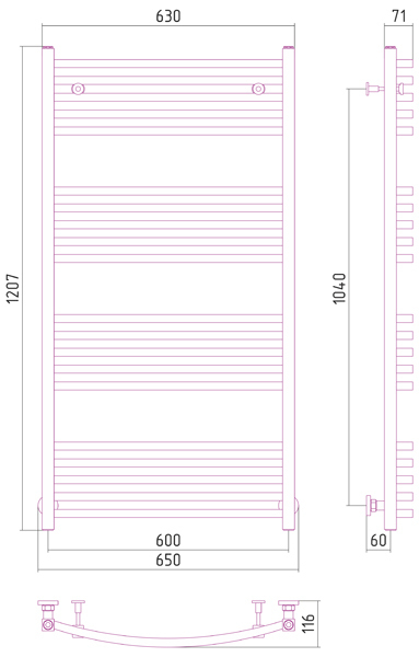 Внешние габариты (высота х ширина х глубина) (мм) : 1207 х 650 х 116