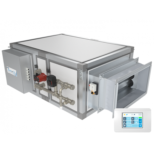 ОписаниеПриточная установка с водяным нагревателем и смесительным узлом с 2-х или 3-х ходовым клапаном (узел подбирается исходя из типа водоснабжения), комплектуется воздушным клапаном с электроприводом (с возвратной пружиной) и системой цифровой автоматики JetLogic с цветным сенсорным пультом управления и всеми необходимыми датчиками. Вентилятор Ebmpapst (произведен в Германии).