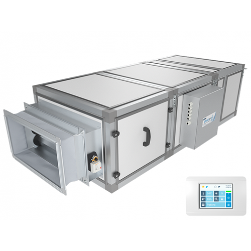 ОписаниеПриточная установка с электрическим нагревателем (при заказе возможен выбор различных мощностей нагревателя) и френовым охладителем (требуется ККБ), комплектуется воздушным клапаном с электроприводом, системой цифровой автоматики JetLogic с цветным сенсорным пультом управления и всеми необходимыми датчиками. Автоматика может управлять различными типами ККБ. Вентилятор Ebmpapst серии EC (произведен в Германии).