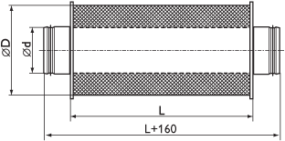 Корпус шумоглушитель Provent RS 250/600 изготовлен из оцинкованной стали, в качестве звукопоглощающего материала используется минеральное волокно толщиной 50 мм.