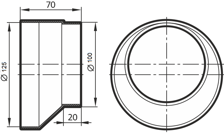 Соединитель круглых воздуховодов эксцентриковый универсальный 100/125 (редуктор)