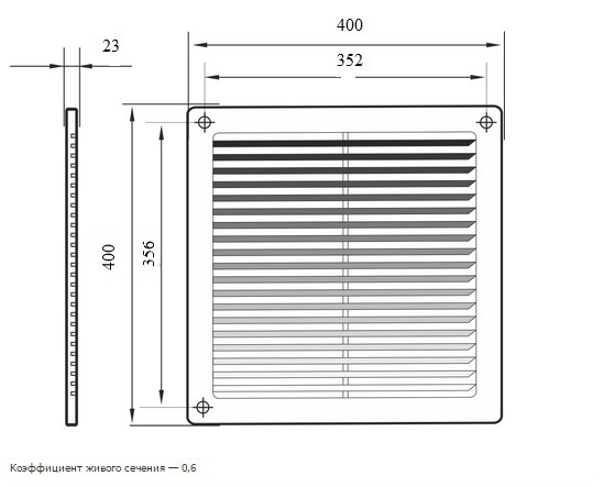 Решетка вентиляционная с наклонными фиксированными жалюзи.