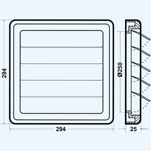 Решетка 294х294 D 250 с гравитационными жалюзи (2929К250Ф)