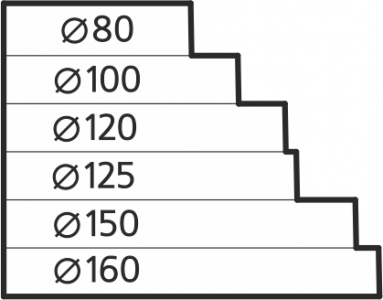 Предназначены для монтажа воздуховодов разного диаметра; возможные варианты: 80, 100, 120, 125, 150, 160 мм, не нужная часть отрезается.