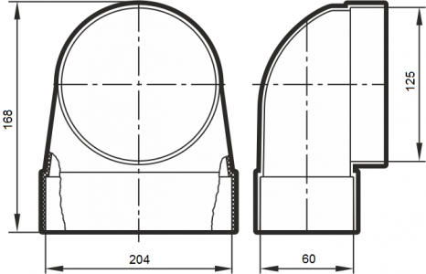 Соединитель угловой ERA 620СК12,5ФП 204х60 d125 ФП проходной пластиковый