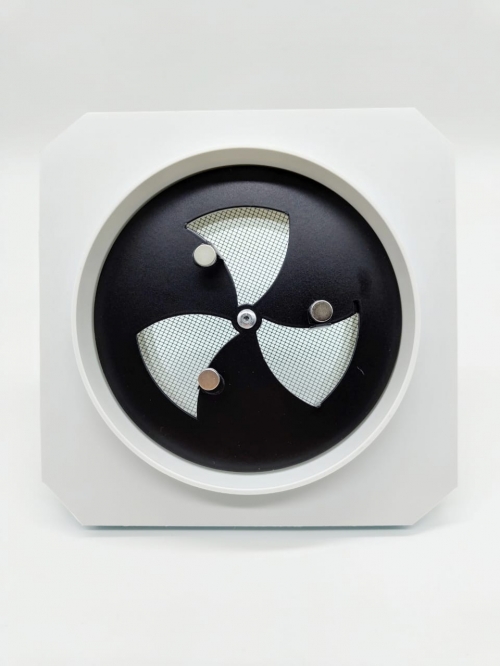 Так же диффузор состоит из металлической заслонкой, которой можно регулировать поток воздуха, либо полностью перекрыть его. К заслонке с помощью магнитов крепится декоративная круглая панелька, которую можно покрасить в цвет потолка. Так же по ободку диффузора имеется молярная сетка, для надёжной фиксации шпаклёвки. Наши диффузоры оснащены москитной сеточкой, которая препятствует попаданию насекомых в помещение.