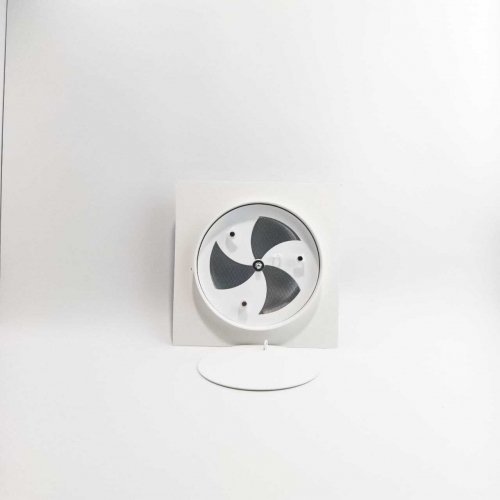 Так же диффузор состоит из металлической заслонкой, которой можно регулировать поток воздуха, либо полностью перекрыть его. К заслонке с помощью магнитов крепится декоративная круглая панелька, которую можно покрасить в цвет потолка. Так же по ободку диффузора имеется молярная сетка, для надёжной фиксации шпаклёвки. Наши диффузоры оснащены москитной сеточкой, которая препятствует попаданию насекомых в помещение.