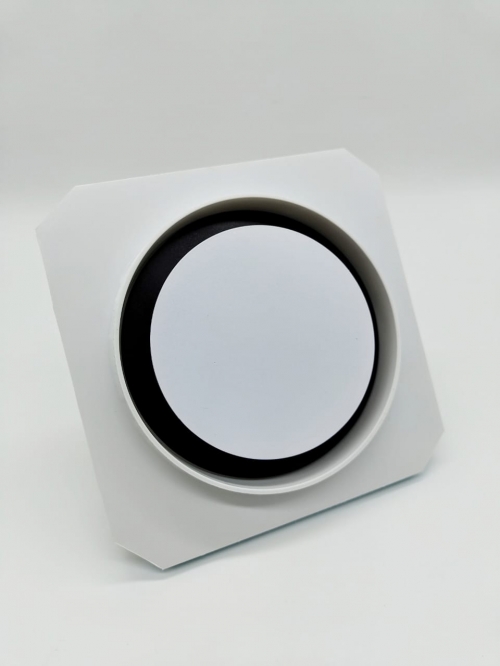 Так же диффузор состоит из металлической заслонкой, которой можно регулировать поток воздуха, либо полностью перекрыть его. К заслонке с помощью магнитов крепится декоративная круглая панелька, которую можно покрасить в цвет потолка. Так же по ободку диффузора имеется молярная сетка, для надёжной фиксации шпаклёвки. Наши диффузоры оснащены москитной сеточкой, которая препятствует попаданию насекомых в помещение.