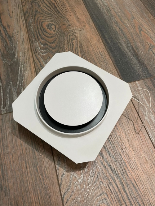 Диффузор состоит из пластикового перехода с площадкой позволяющей удобно и без проблем закрепить диффузор в гипсокартон. Диффузор рассчитан под гипсокартон толщиной 12 мм.