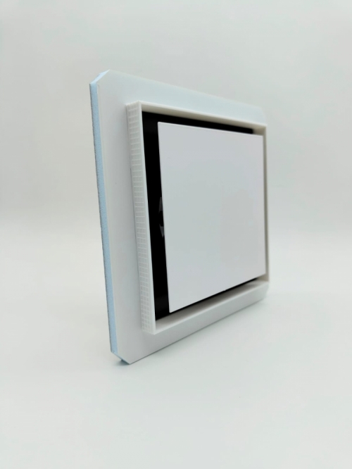 Так же диффузор состоит из металлической заслонкой, которой можно регулировать поток воздуха, либо полностью перекрыть его. К заслонке с помощью магнитов крепится декоративная квадратная панелька, которую можно покрасить в цвет потолка. Так же по ободку диффузора имеется молярная сетка, для надёжной фиксации шпаклёвки. Наши диффузоры оснащены москитной сеточкой, которая препятствует попаданию насекомых в помещение.