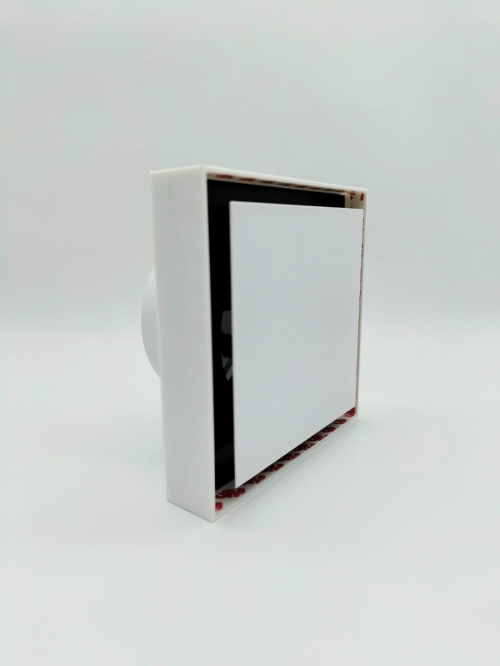 Диффузор состоит из пластикового перехода, металлической заслонкой, которой можно регулировать поток воздуха, либо полностью перекрыть его. К заслонке с помощью магнитов крепится декоративная квадратная панелька, которую можно покрасить в цвет потолка. Так же по ободку диффузора имеется надёжный двухсторонний скот марки 3М, к которому крепится полотно натяжного потолка. Наши диффузоры оснащены москитной сеточкой, которая препятствует попаданию насекомых в помещение.