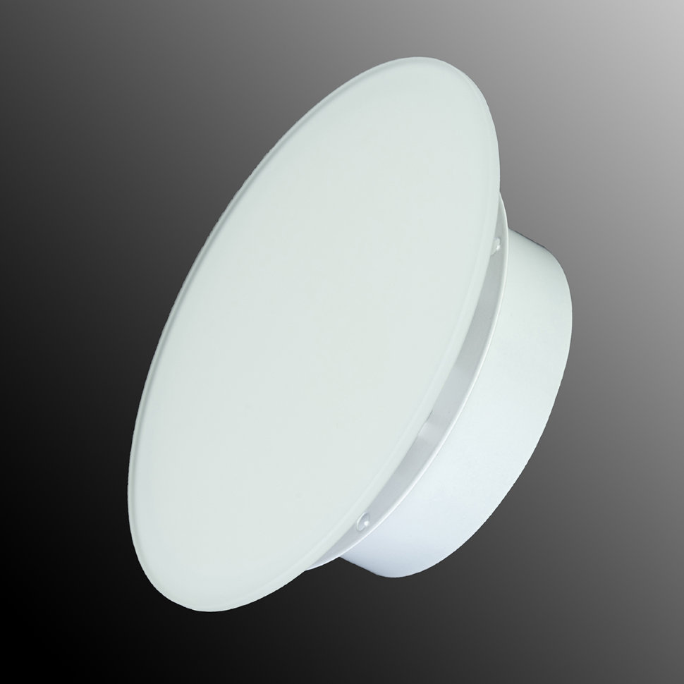 - Вентилятор из белого глянцевого стекла накладного типа.
