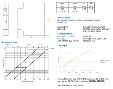 Тройник Quadrodec 90° представляет собой сварной тройник для соединения 3 прямоугольных каналов Quadrodec.