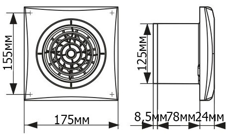 Укороченный фланец – позволит установить вентилятор в вентиляционную шахту или присоединить к воздуховоду Ø100, 125 мм.