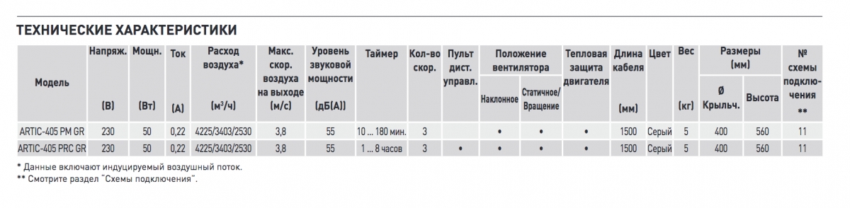 Модель ARTIC -405 PM GR комплектуется двумя шнуровыми выключателями, при помощи одного можно управлять скоростями и выключить вентилятор, при помощи второго управлять вращением вентилятора.