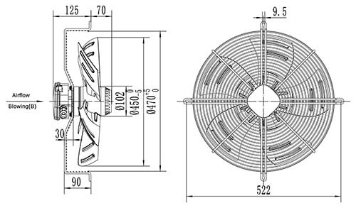 Вентилятор Ванвент YWF4E-450B-102/60-G нагнетающий (приток) на сетке (5100 m/h)