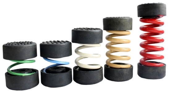 Стальные виброизоляторы представляют собой два основания с резиновыми или пробковыми накладками, между которыми размещена пружина.