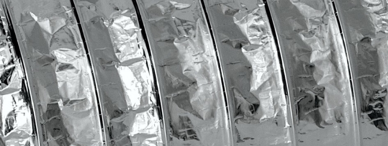 СПЕЦИФИКАЦИИдиапазон температур:-30 °C до 140 °Смаксимальное рабочее давление:макс. +2500 Памаксимальная скорость воздуха:макс. 30 м/сминимальный радиус изгиба:мин. 0.54 x ∅диапазон диаметров:102 - 508 ммстандартная длина:10 метровКОНСТРУКЦИЯколичество слоев:5толщина алюминия:3 - 7 микронтолщина полиэстера:2 - 12 микронобщая толщина:45 микрон (без клея)расстояние между витками каркаса:18 ммстандартный цвет:алюминий
